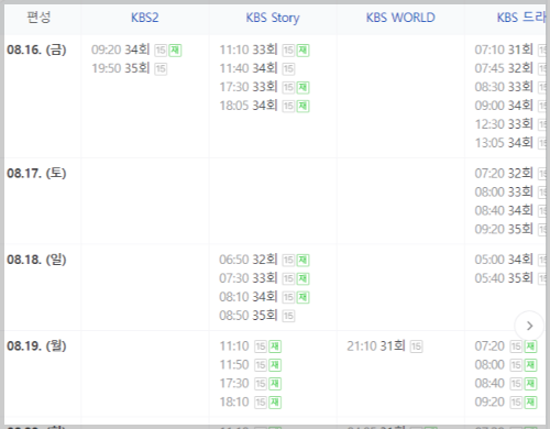8월 15일 방영된 34회의 재방송은 8월 16일 오전 9시 00분에 KBS 드라마TV에서 방송됩니다.
