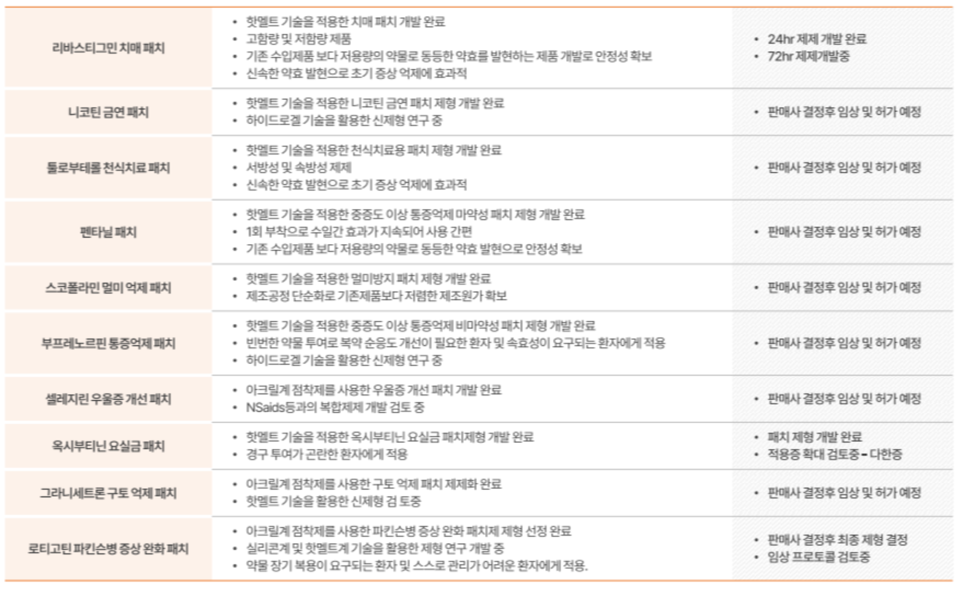주요 제품: 카타플라스마, 플라스타 등 파스 제품